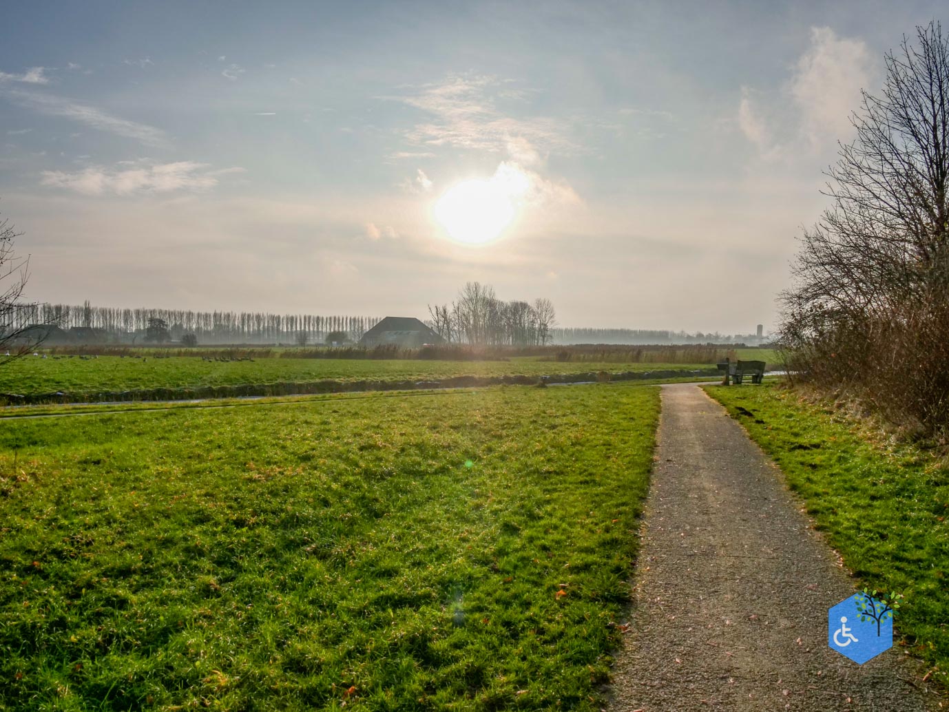 De route start op het parkeerterrein, hier is een invalidenparkeerplaats aanwezig. De hele route is geasfalteerd en onderweg zijn er veel bankjes langs de route. Bij alle bankjes is ook voldoende ruimte voor een rolstoel en meer aan het einde van de route is er nog een rolstoelvriendelijke picknicktafel. Toch hebben we ervoor gekozen de route niet als rolstoelvriendelijk te benoemen: Op alle paden mag namelijk worden gefietst! Het pad varieert van 1,60m tot op de smalste stukken 1,3m breed en is daarmee wat ons betreft te smal voor een gecombineerd fiets-voetpad. Dit is ook de reden dat we aanraden om een begeleider mee te nemen voor het overzicht: de fietsers zie je lang niet altijd aankomen en rijden soms best hard.
